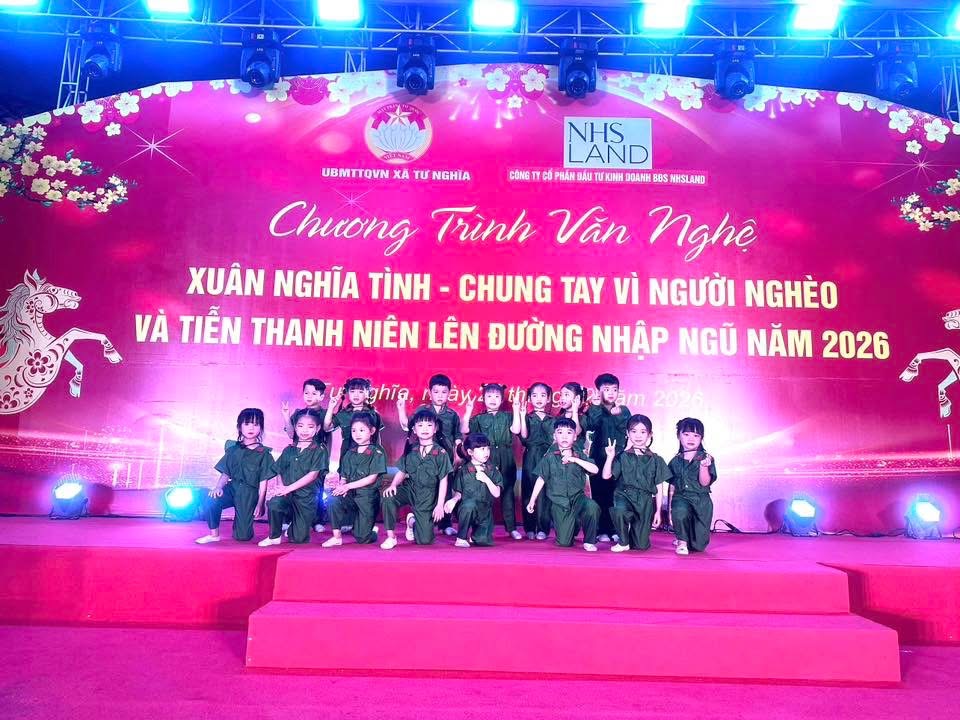 💥 HÒA CHUNG KHÔNG KHÍ RỘN RÀNG ĐÊM VĂN NGHỆ TẠI XÃ TƯ NGHĨA 💥 🌻Tối ngày 27/02/2026, tại Quảng trường 24/3, đêm văn nghệ với chủ đề “Xuân nghĩa tình – Chung tay vì người nghèo và tiễn thanh niên lên đường nhập ngũ năm 2026” đã diễn ra trong không khí vui tươi, ấm áp và đầy ý nghĩa. 🌸 Trường Mầm non Hoa Sen rất vinh dự khi các bé đã tham gia biểu diễn tiết mục múa “Khát vọng tuổi trẻ” – một tiết mục sôi động, tràn đầy năng lượng, thể hiện tinh thần tự hào, nhiệt huyết và niềm tin vào tương lai tươi sáng của quê hương. Tiết mục không chỉ góp phần làm phong phú thêm chương trình nghệ thuật của địa phương mà còn lan tỏa thông điệp về ước mơ, khát vọng và trách nhiệm của thế hệ trẻ trong công cuộc xây dựng và bảo vệ Tổ quốc. 🌼 Sự cổ vũ nhiệt tình của quý đại biểu, phụ huynh và bà con Nhân dân chính là nguồn động viên to lớn để các bé hoàn thành phần biểu diễn thật tự tin, rạng rỡ. Nhà trường xin gửi lời cảm ơn chân thành đến lãnh đạo địa phương đã tạo điều kiện để cô và trò có cơ hội giao lưu, học hỏi và đóng góp vào hoạt động ý nghĩa của xã nhà. Kính chúc quê hương Tư Nghĩa ngày càng phát triển, giàu đẹp; chúc các thanh niên lên đường nhập ngũ năm 2026 vững vàng, hoàn thành xuất sắc nhiệm vụ được giao! 🇻🇳✨ #TruongMamNonHoaSen #XuanNghiaTinh #KhatVongTuoiTre